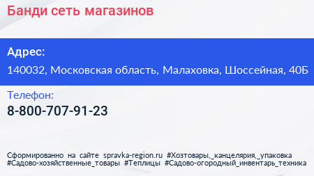 Банди, сеть магазинов по адресу 140032, Московская область, Малаховка, Шоссейная, 40Б в дальнейшем Организация, размещена в следующих категориях: