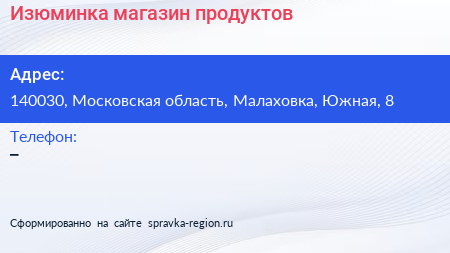 Изюминка, магазин продуктов по адресу 140030, Московская область, Малаховка, Южная, 8 в дальнейшем Организация, размещена в следующих категориях: