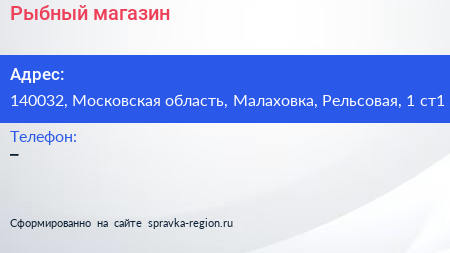 Рыбный магазин по адресу 140032, Московская область, Малаховка, Рельсовая, 1 ст1 в дальнейшем Организация, размещена в следующих категориях: