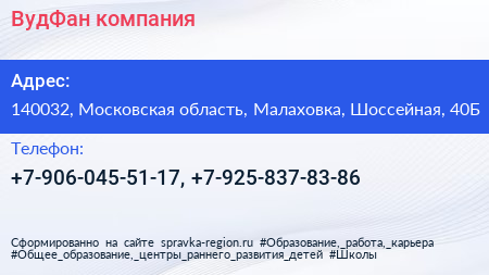 ВудФан, компания по адресу 140032, Московская область, Малаховка, Шоссейная, 40Б в дальнейшем Организация, размещена в следующих категориях: