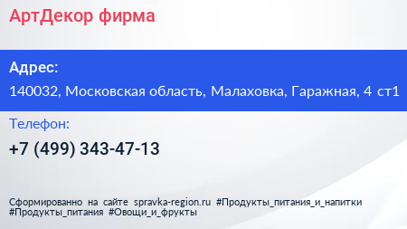 АртДекор, фирма по адресу 140032, Московская область, Малаховка, Гаражная, 4 ст1 в дальнейшем Организация, размещена в следующих категориях: