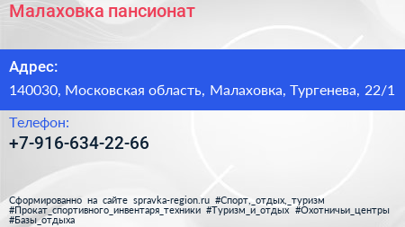 Малаховка, пансионат по адресу 140030, Московская область, Малаховка, Тургенева, 22/1 в дальнейшем Организация, размещена в следующих категориях: