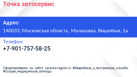 Точка, автосервис по адресу 140033, Московская область, Малаховка, Вишнёвая, 1а в дальнейшем Организация, размещена в следующих категориях: