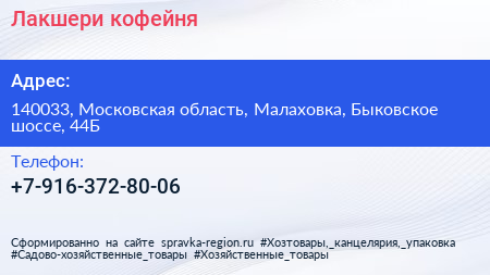 Лакшери, кофейня по адресу 140033, Московская область, Малаховка, Быковское шоссе, 44Б в дальнейшем Организация, размещена в следующих категориях: