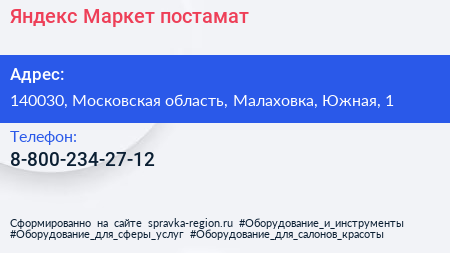 Яндекс.Маркет, постамат по адресу 140030, Московская область, Малаховка, Южная, 1 в дальнейшем Организация, размещена в следующих категориях: