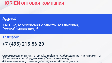 HORIEN, оптовая компания по адресу 140032, Московская область, Малаховка, Республиканская, 5 в дальнейшем Организация, размещена в следующих категориях:
