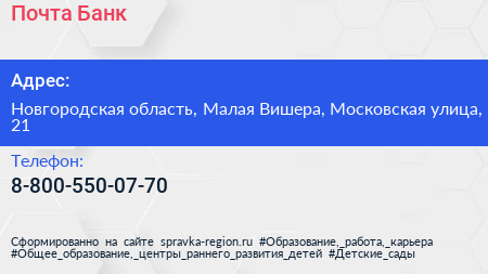 Почта Банк по адресу Новгородская область, Малая Вишера, Московская улица, 21 в дальнейшем Организация, размещена в следующих категориях: