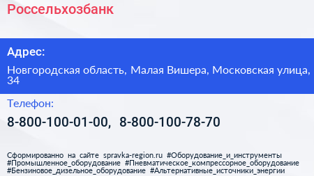 Россельхозбанк по адресу Новгородская область, Малая Вишера, Московская улица, 34 в дальнейшем Организация, размещена в следующих категориях: