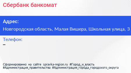 Сбербанк, банкомат по адресу Новгородская область, Малая Вишера, Школьная улица, 3 в дальнейшем Организация, размещена в следующих категориях: