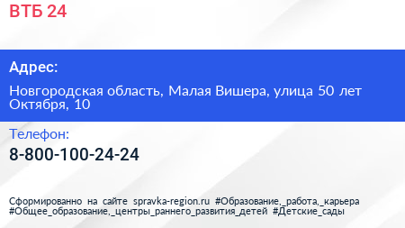 ВТБ 24 по адресу Новгородская область, Малая Вишера, улица 50 лет Октября, 10 в дальнейшем Организация, размещена в следующих категориях: