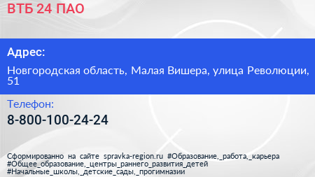 ВТБ 24, ПАО по адресу Новгородская область, Малая Вишера, улица Революции, 51 в дальнейшем Организация, размещена в следующих категориях: