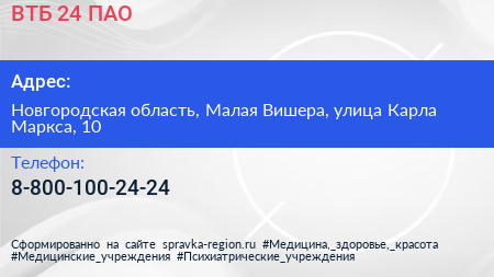 ВТБ 24, ПАО по адресу Новгородская область, Малая Вишера, улица Карла Маркса, 10 в дальнейшем Организация, размещена в следующих категориях: