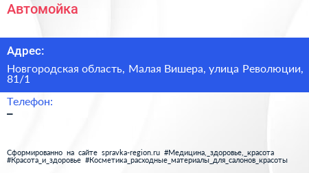 Автомойка по адресу Новгородская область, Малая Вишера, улица Революции, 81/1 в дальнейшем Организация, размещена в следующих категориях: