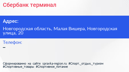 Сбербанк, терминал по адресу Новгородская область, Малая Вишера, Новгородская улица, 20 в дальнейшем Организация, размещена в следующих категориях: