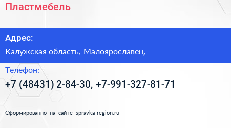 Пластмебель по адресу Калужская область, Малоярославец, в дальнейшем Организация, размещена в следующих категориях: