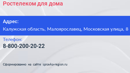 Ростелеком для дома по адресу Калужская область, Малоярославец, Московская улица, 8 в дальнейшем Организация, размещена в следующих категориях: