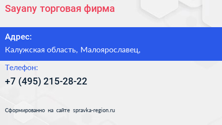 Sayany, торговая фирма по адресу Калужская область, Малоярославец, в дальнейшем Организация, размещена в следующих категориях: