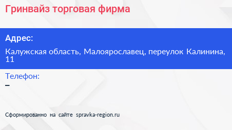 Гринвайз, торговая фирма по адресу Калужская область, Малоярославец, переулок Калинина, 11 в дальнейшем Организация, размещена в следующих категориях: