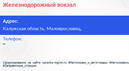Железнодорожный вокзал по адресу Калужская область, Малоярославец, в дальнейшем Организация, размещена в следующих категориях: