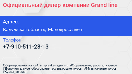 Официальный дилер компании Grand line по адресу Калужская область, Малоярославец, в дальнейшем Организация, размещена в следующих категориях: