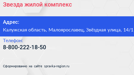 Звезда, жилой комплекс по адресу Калужская область, Малоярославец, Звёздная улица, 14/1 в дальнейшем Организация, размещена в следующих категориях: