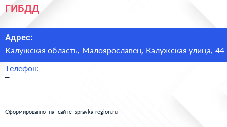 ГИБДД по адресу Калужская область, Малоярославец, Калужская улица, 44 в дальнейшем Организация, размещена в следующих категориях: