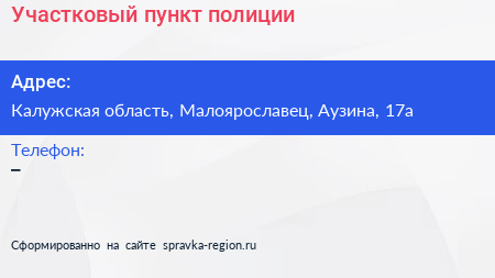 Участковый пункт полиции по адресу Калужская область, Малоярославец, Аузина, 17а в дальнейшем Организация, размещена в следующих категориях: