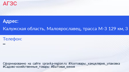 АГЗС по адресу Калужская область, Малоярославец, трасса М-3 129 км, 3 в дальнейшем Организация, размещена в следующих категориях: