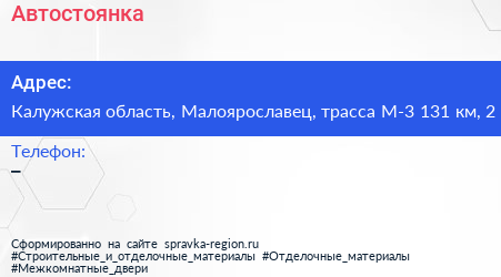 Автостоянка по адресу Калужская область, Малоярославец, трасса М-3 131 км, 2 в дальнейшем Организация, размещена в следующих категориях: