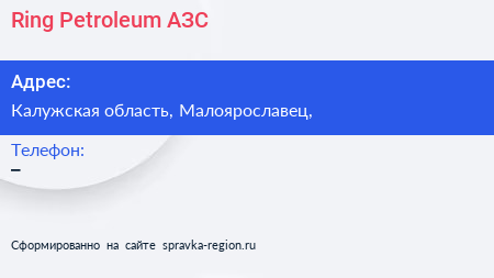 Ring Petroleum, АЗС по адресу Калужская область, Малоярославец, в дальнейшем Организация, размещена в следующих категориях: