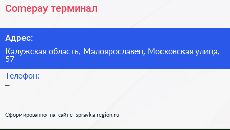 Comepay, терминал по адресу Калужская область, Малоярославец, Московская улица, 57 в дальнейшем Организация, размещена в следующих категориях: