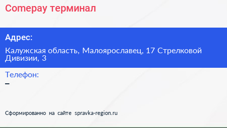 Comepay, терминал по адресу Калужская область, Малоярославец, 17 Стрелковой Дивизии, 3 в дальнейшем Организация, размещена в следующих категориях: