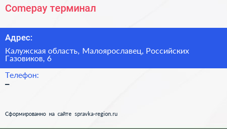 Comepay, терминал по адресу Калужская область, Малоярославец, Российских Газовиков, 6 в дальнейшем Организация, размещена в следующих категориях: