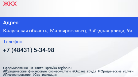 ЖКХ по адресу Калужская область, Малоярославец, Звёздная улица, 9а в дальнейшем Организация, размещена в следующих категориях:
