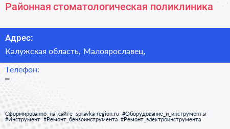 Районная стоматологическая поликлиника по адресу Калужская область, Малоярославец, в дальнейшем Организация, размещена в следующих категориях: