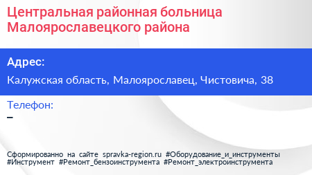Центральная районная больница Малоярославецкого района по адресу Калужская область, Малоярославец, Чистовича, 38 в дальнейшем Организация, размещена в следующих категориях: