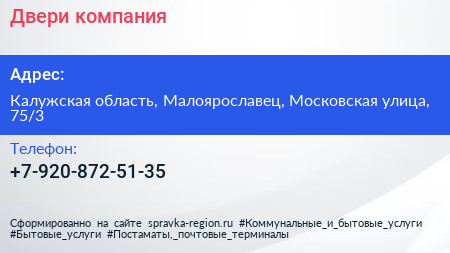 Двери, компания по адресу Калужская область, Малоярославец, Московская улица, 75/3 в дальнейшем Организация, размещена в следующих категориях: