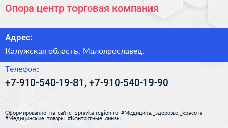 Опора центр, торговая компания по адресу Калужская область, Малоярославец, в дальнейшем Организация, размещена в следующих категориях: