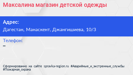 Максалина, магазин детской одежды по адресу Дагестан, Манаскент, Джангишиева, 10/3 в дальнейшем Организация, размещена в следующих категориях: