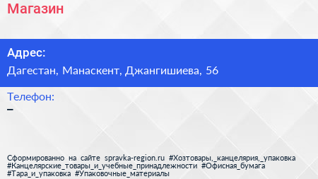 Магазин по адресу Дагестан, Манаскент, Джангишиева, 56 в дальнейшем Организация, размещена в следующих категориях: