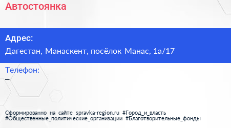 Автостоянка по адресу Дагестан, Манаскент, посёлок Манас, 1а/17 в дальнейшем Организация, размещена в следующих категориях: