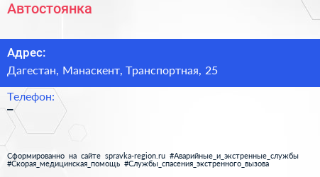 Адрес: Дагестан, Манаскент, Транспортная, 1а/3