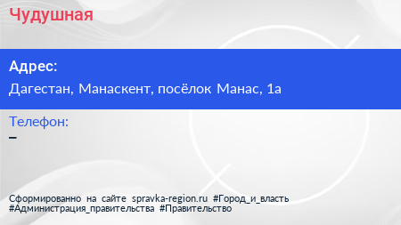 Чудушная по адресу Дагестан, Манаскент, посёлок Манас, 1а в дальнейшем Организация, размещена в следующих категориях:
