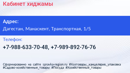 Адрес: Дагестан, Манаскент, Транспортная, 1а/1