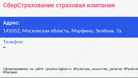 СберСтрахование, страховая компания по адресу 141052, Московская область, Марфино, Зелёная, 7а в дальнейшем Организация, размещена в следующих категориях:
