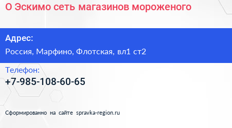 О! Эскимо, сеть магазинов мороженого по адресу Апарт-отель "Зеленый мыс", Изумрудный проспект, КП "Зеленый мыс", Подольниха, городской округ Мытищи, Московская область, Центральный федеральный округ, Россия в дальнейшем Организация, размещена в следующих категориях:
