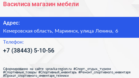 Василиса, магазин мебели по адресу Кемеровская область, Мариинск, улица Ленина, 6 в дальнейшем Организация, размещена в следующих категориях: