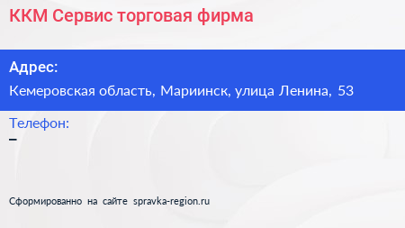 ККМ-Сервис, торговая фирма по адресу Кемеровская область, Мариинск, улица Ленина, 53 в дальнейшем Организация, размещена в следующих категориях: