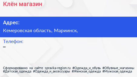 Клён, магазин по адресу Кемеровская область, Мариинск, в дальнейшем Организация, размещена в следующих категориях: