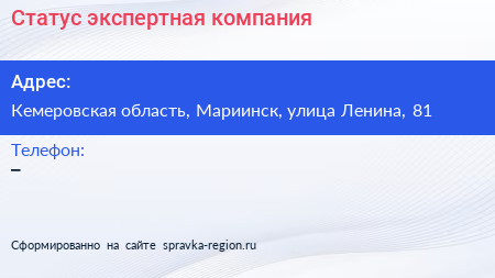 Статус, экспертная компания по адресу Кемеровская область, Мариинск, улица Ленина, 81 в дальнейшем Организация, размещена в следующих категориях: